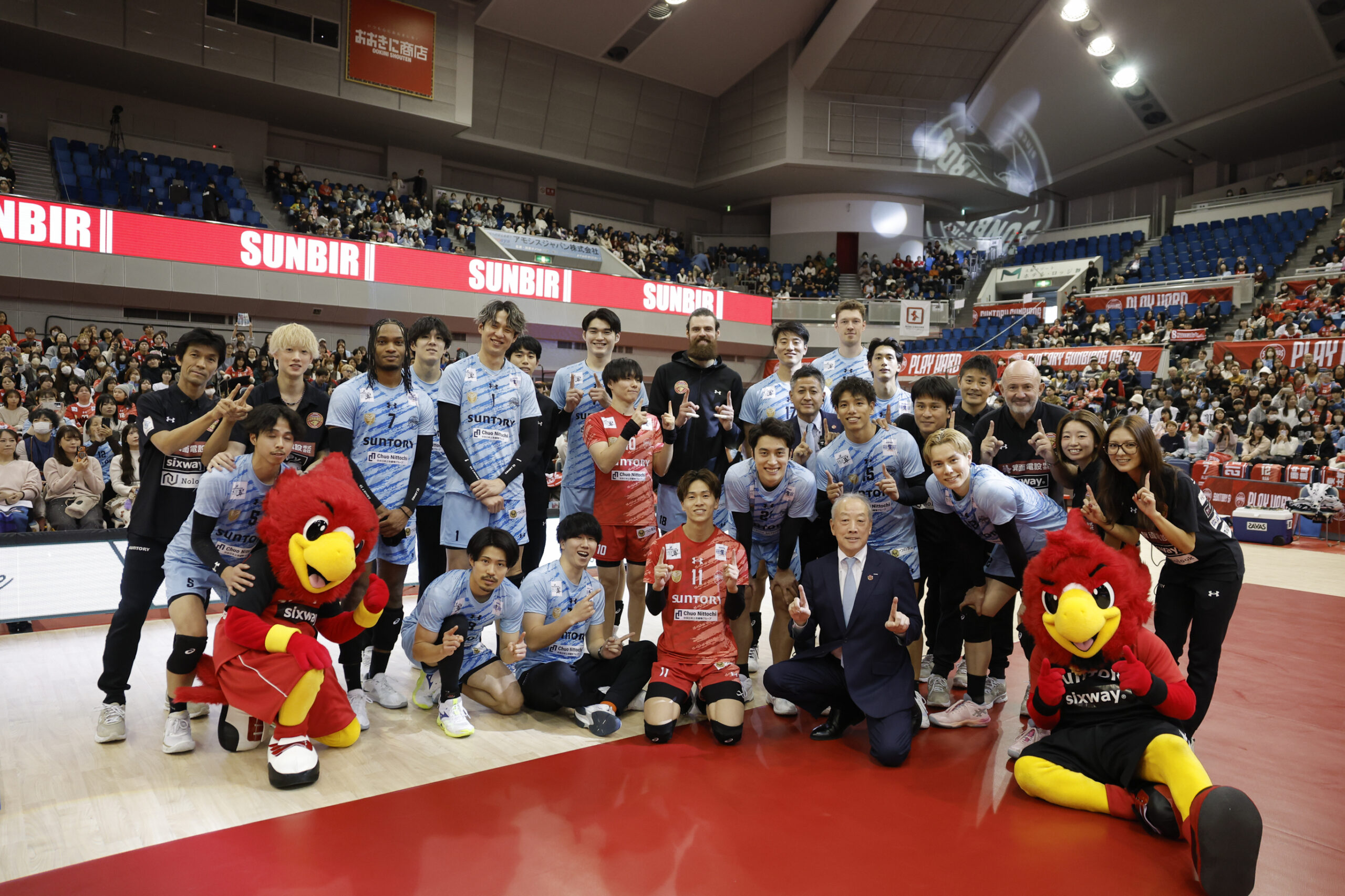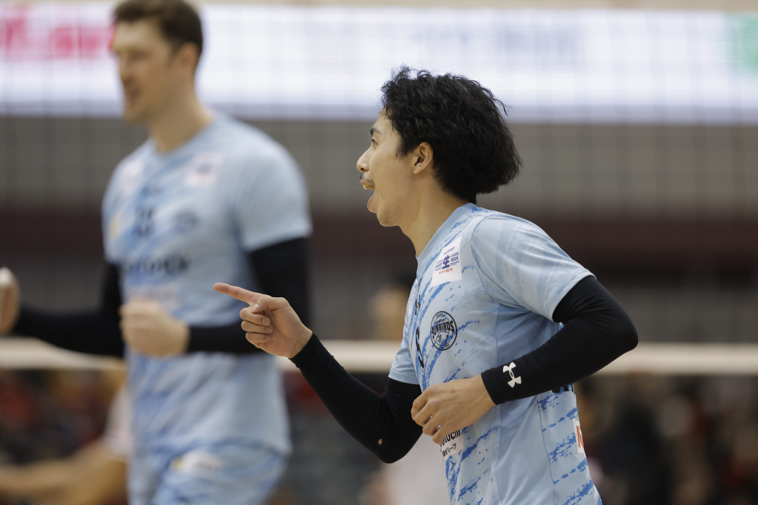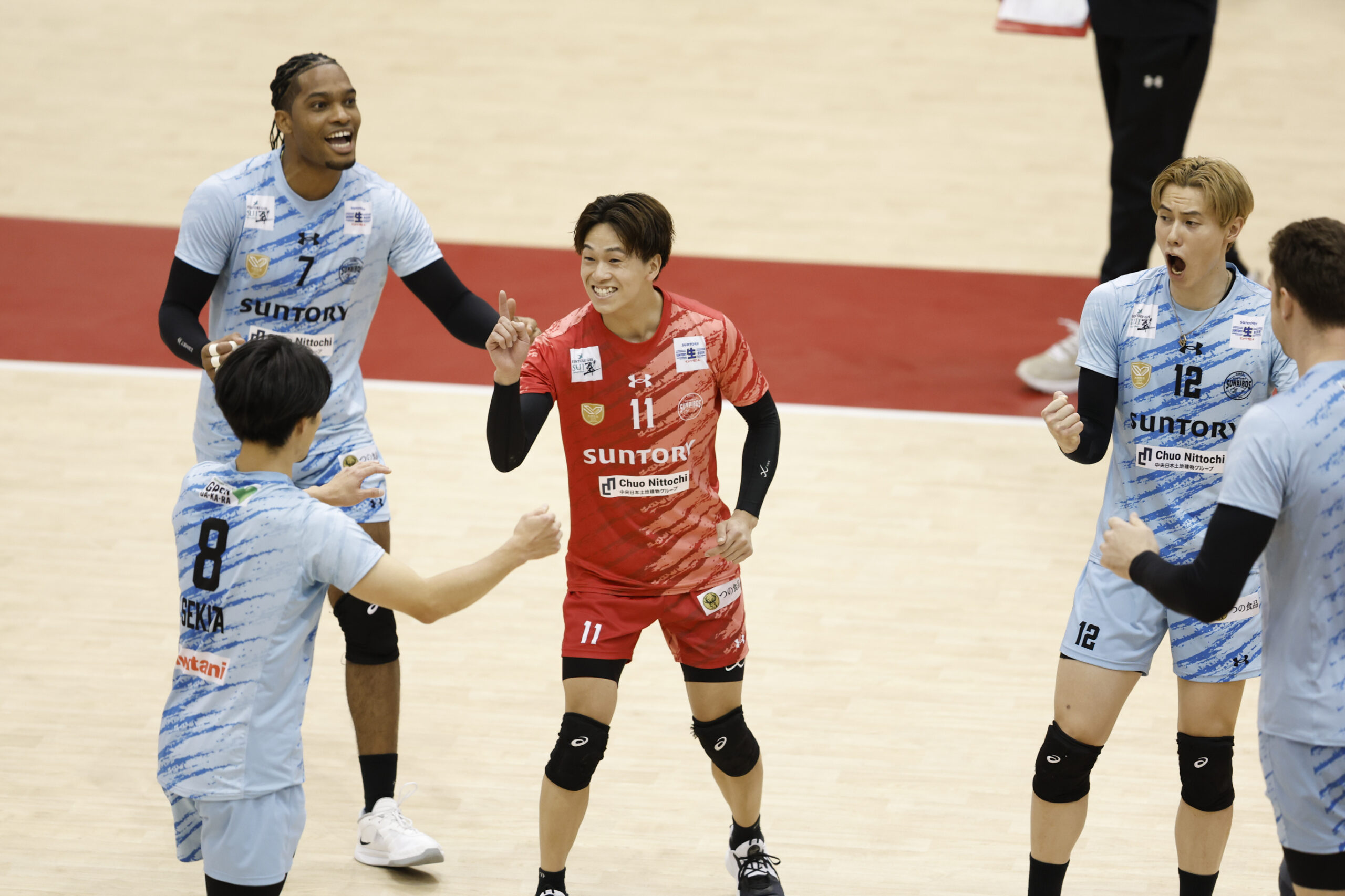 ในส่วนของการแข่งขันนัดที่ 2 ของสัปดาห์ที่ 6 นี้ เซตที่ 1 เริ่มต้นด้วย Dmitriy Muserskiy ในตำแหน่งตัวตบตรงข้ามตัวเซต, Masahiro Sekita เป็นตัวเซต, ตัวตบหัวเสาคือ Ran Takahashi และ Alain De Armas, ตัวบล็อกกลางคือ Taishi Onodera และ Tatsuki Kashiwada โดยมี Soshi Fujinaka เป็นตัวรับอิสระ ช่วงต้นเกมทีมทำแต้มนำ 4-3 จากการตบของ Tatsuki Kashiwada และ Alain De Armas ที่ลงสนามเป็นตัวจริงในวันนี้ หลังจากนั้นเสียแต้มเบรกต่อเนื่องจากลูกเสิร์ฟคู่แข่งจนถูกนำไป 7-9 แต่ลูกเสิร์ฟของ Alain De Armas ก็ช่วยให้กลับมาตีเสมอที่ 11-11 ช่วงกลางเซต Taishi Onodera ทำคะแนนจากลูกเสิร์ฟให้ทีมเสมอ 13-13 จากนั้น Dmitriy Muserskiy ตบต่อเนื่องจนพลิกกลับมานำ 16-14 ทำให้ VC NAGANO TRIDENTS ต้องขอเวลานอก หลังจากนั้นจากการบล็อกของ Ran Takahashi และความผิดพลาดของคู่แข่ง ทีมทำได้อีก 3 แต้มเบรกติดต่อกันจนนำ 19-14 ทำให้ VC NAGANO ต้องขอเวลานอกอีกครั้ง แล้ว Dmitriy Muserskiy ก็บล็อกได้อีก 1 แต้มเบรกเป็น 20-14 ช่วงปลายเซตการตบของ Dmitriy Muserskiy และ Taishi Onodera พาทีมนำ 23-17 ตามด้วยคะแนนจากลูกเสิร์ฟและการตบของ Dmitriy Muserskiy ปิดเซตแรกไปได้ที่ 25-18