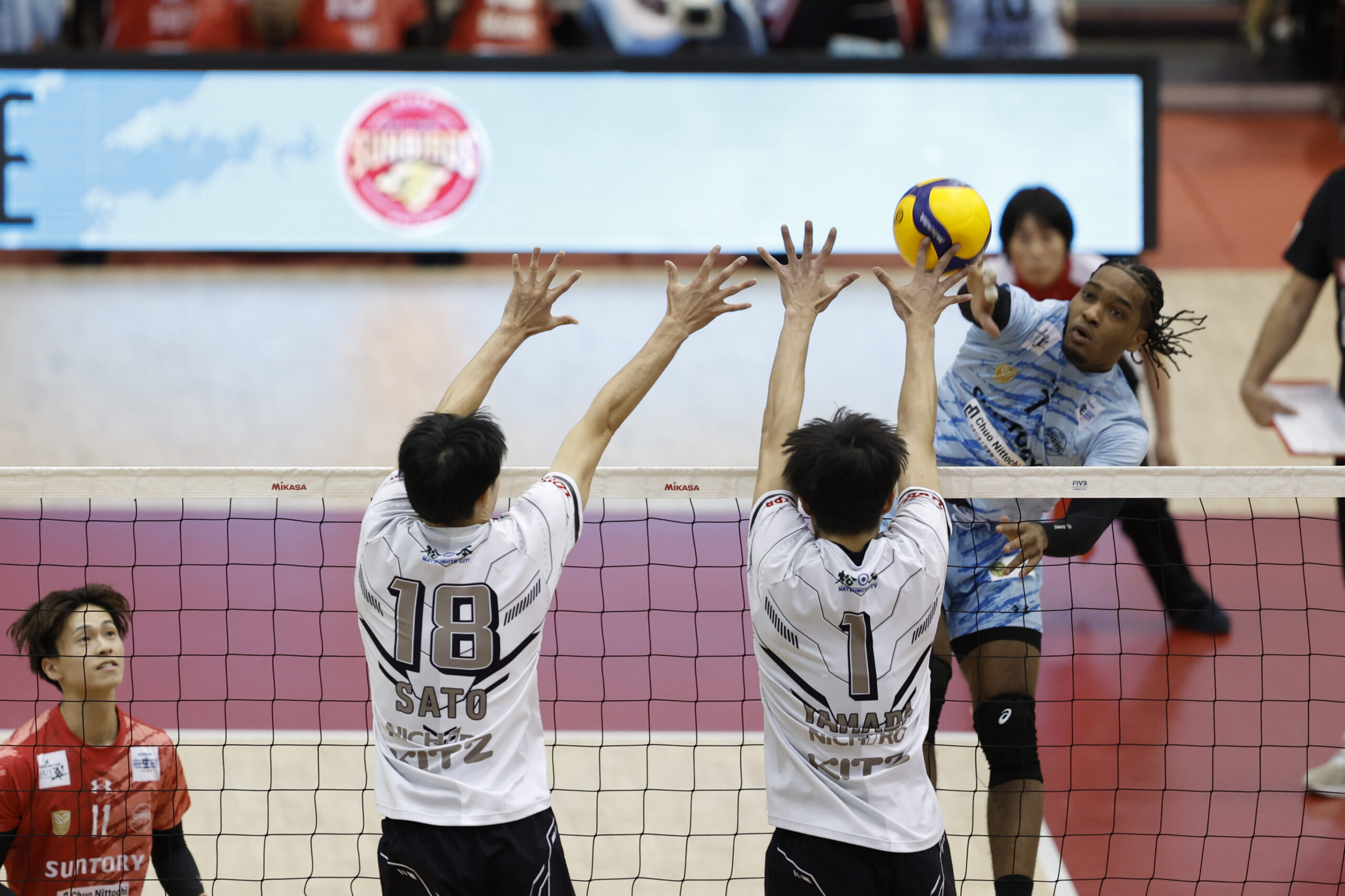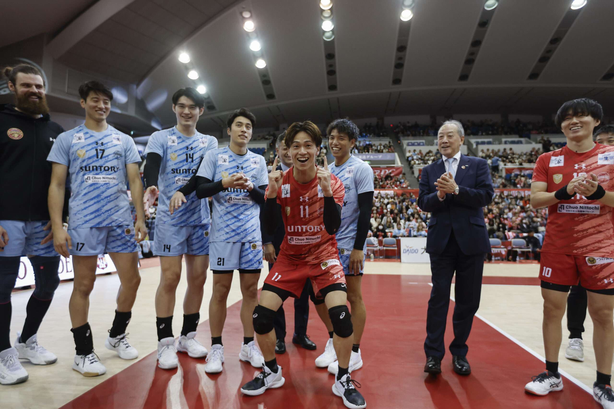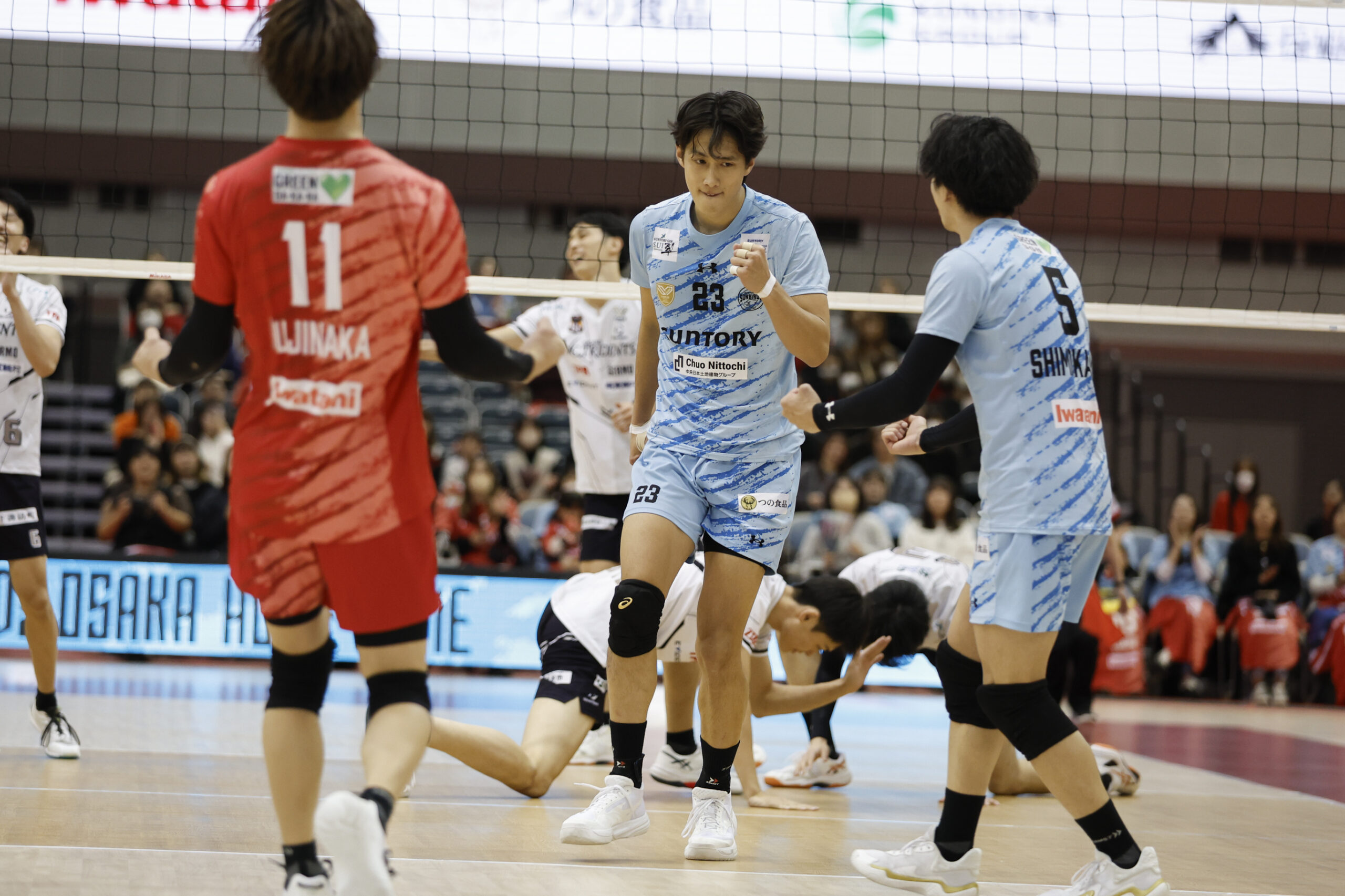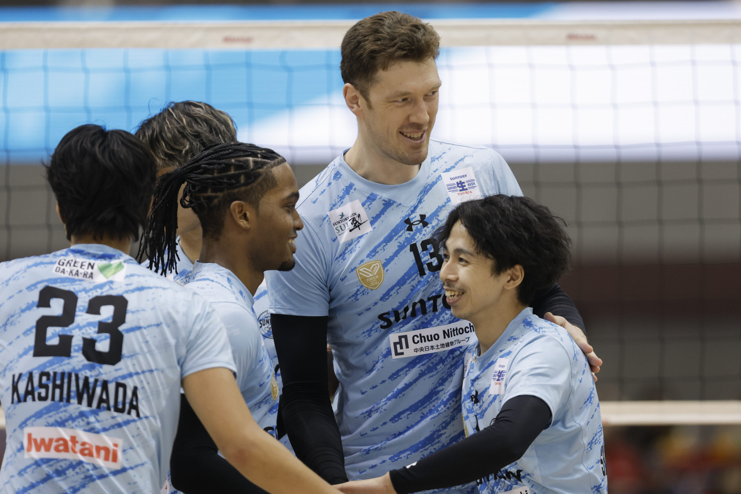 ในส่วนของการแข่งขันนัดที่ 2 ของสัปดาห์ที่ 6 นี้ เซตที่ 1 เริ่มต้นด้วย Dmitriy Muserskiy ในตำแหน่งตัวตบตรงข้ามตัวเซต, Masahiro Sekita เป็นตัวเซต, ตัวตบหัวเสาคือ Ran Takahashi และ Alain De Armas, ตัวบล็อกกลางคือ Taishi Onodera และ Tatsuki Kashiwada โดยมี Soshi Fujinaka เป็นตัวรับอิสระ ช่วงต้นเกมทีมทำแต้มนำ 4-3 จากการตบของ Tatsuki Kashiwada และ Alain De Armas ที่ลงสนามเป็นตัวจริงในวันนี้ หลังจากนั้นเสียแต้มเบรกต่อเนื่องจากลูกเสิร์ฟคู่แข่งจนถูกนำไป 7-9 แต่ลูกเสิร์ฟของ Alain De Armas ก็ช่วยให้กลับมาตีเสมอที่ 11-11 ช่วงกลางเซต Taishi Onodera ทำคะแนนจากลูกเสิร์ฟให้ทีมเสมอ 13-13 จากนั้น Dmitriy Muserskiy ตบต่อเนื่องจนพลิกกลับมานำ 16-14 ทำให้ VC NAGANO TRIDENTS ต้องขอเวลานอก หลังจากนั้นจากการบล็อกของ Ran Takahashi และความผิดพลาดของคู่แข่ง ทีมทำได้อีก 3 แต้มเบรกติดต่อกันจนนำ 19-14 ทำให้ VC NAGANO ต้องขอเวลานอกอีกครั้ง แล้ว Dmitriy Muserskiy ก็บล็อกได้อีก 1 แต้มเบรกเป็น 20-14 ช่วงปลายเซตการตบของ Dmitriy Muserskiy และ Taishi Onodera พาทีมนำ 23-17 ตามด้วยคะแนนจากลูกเสิร์ฟและการตบของ Dmitriy Muserskiy ปิดเซตแรกไปได้ที่ 25-18