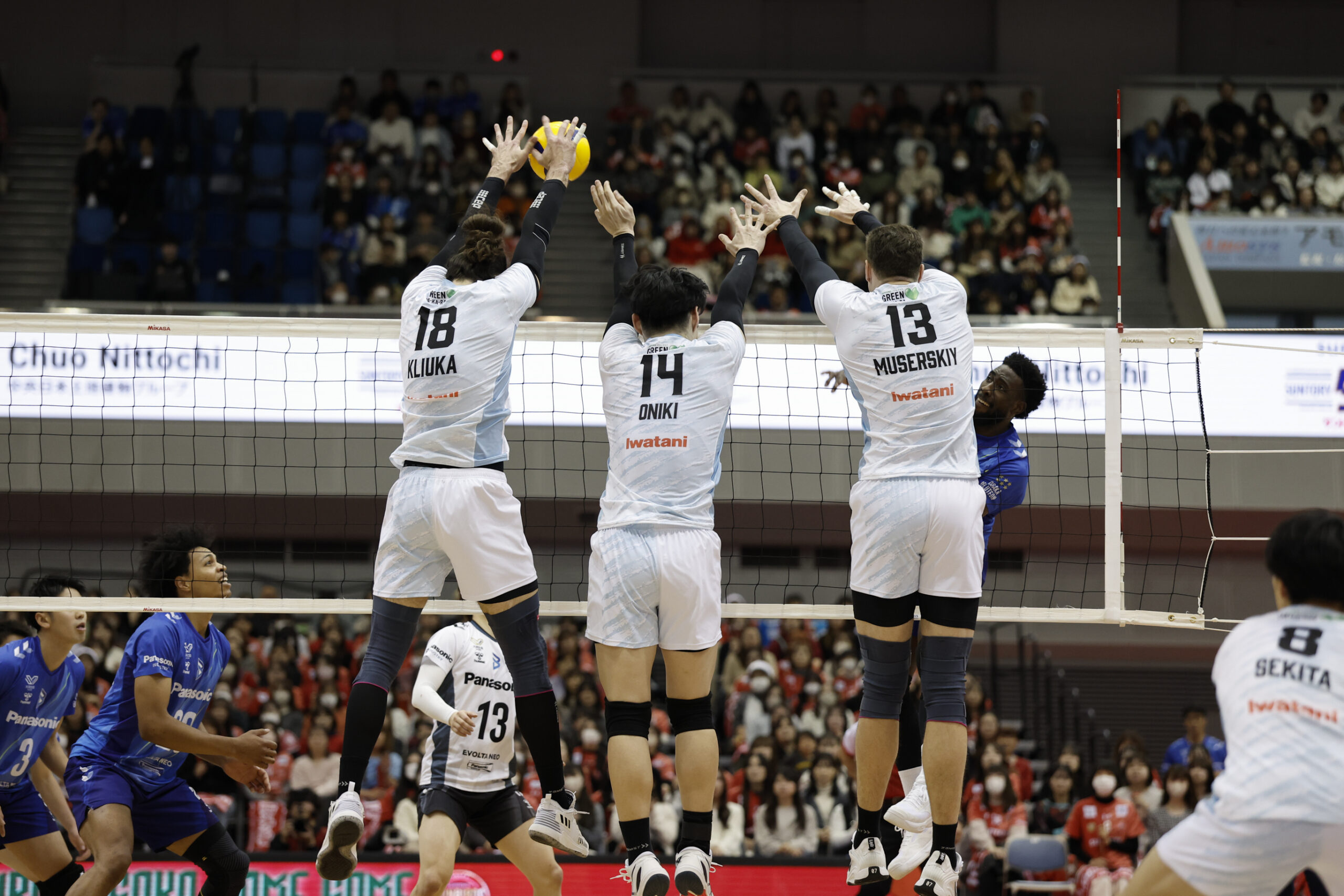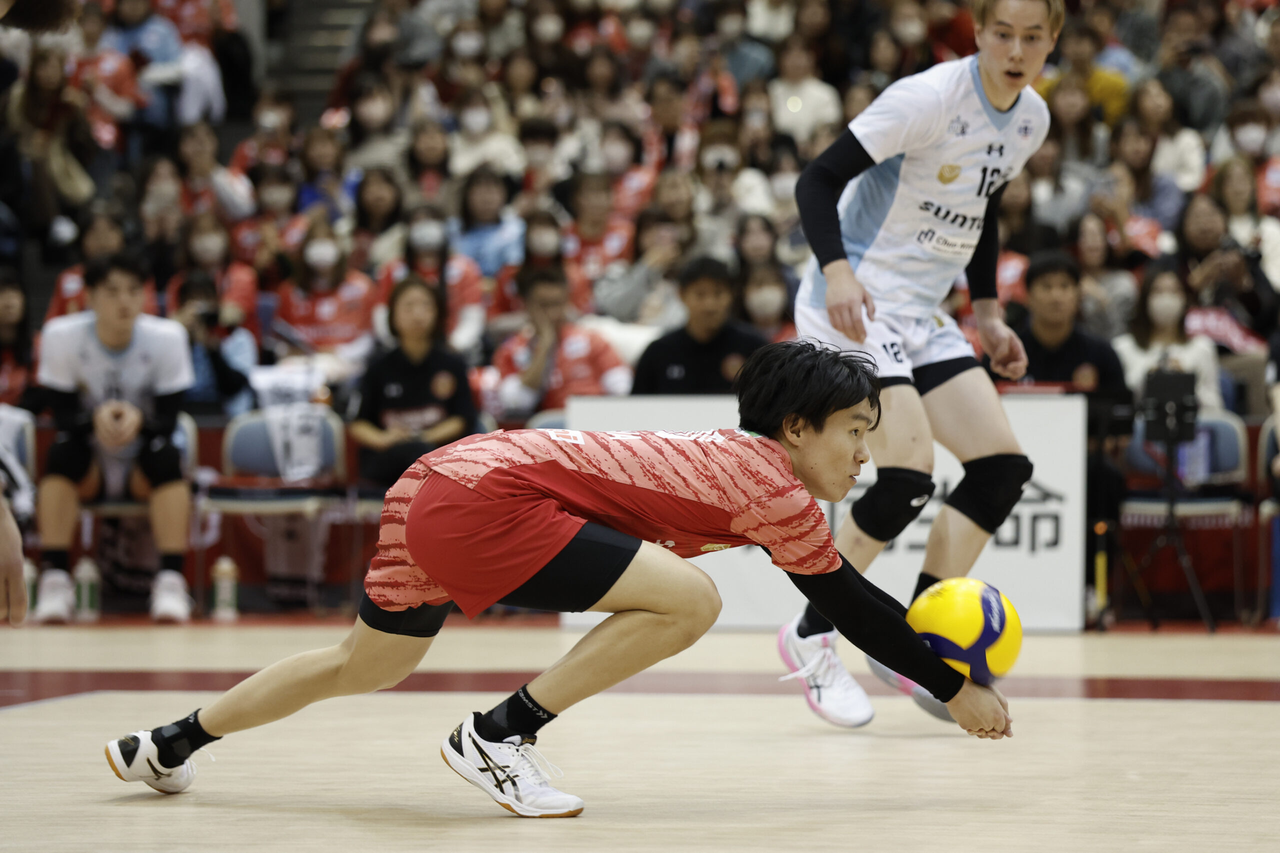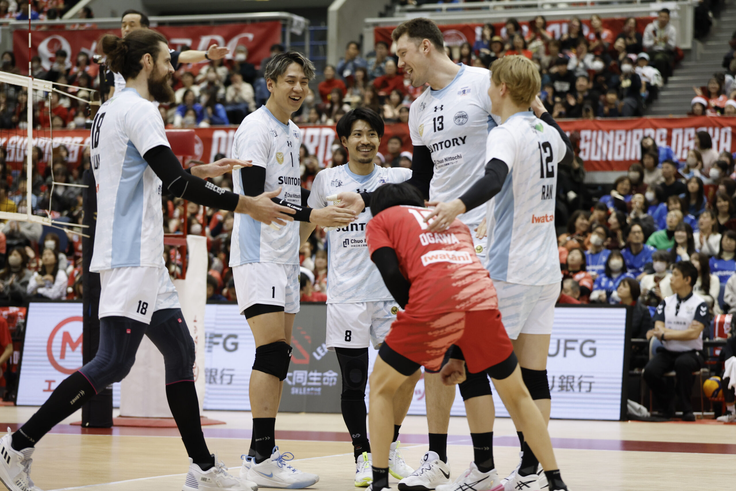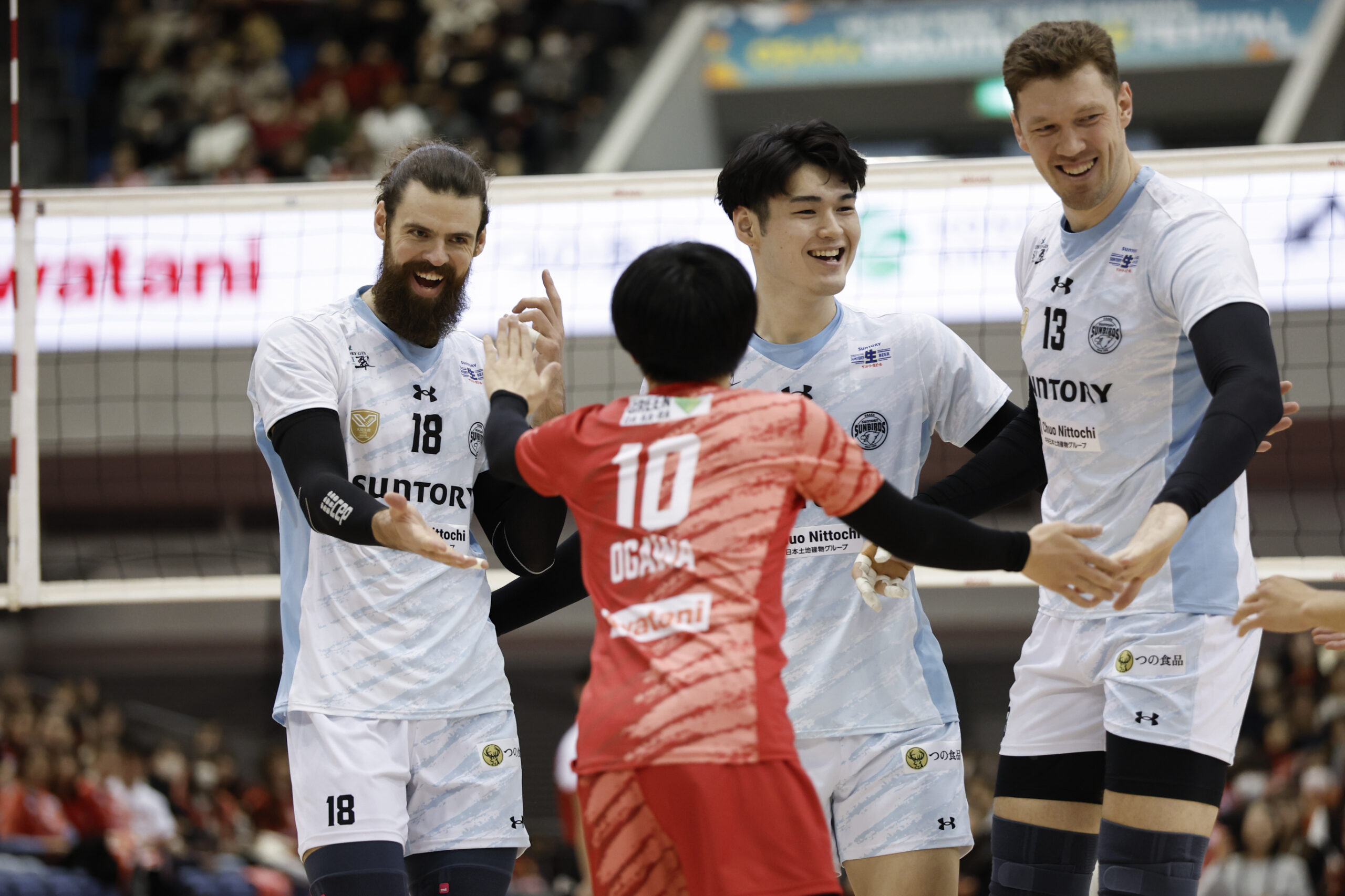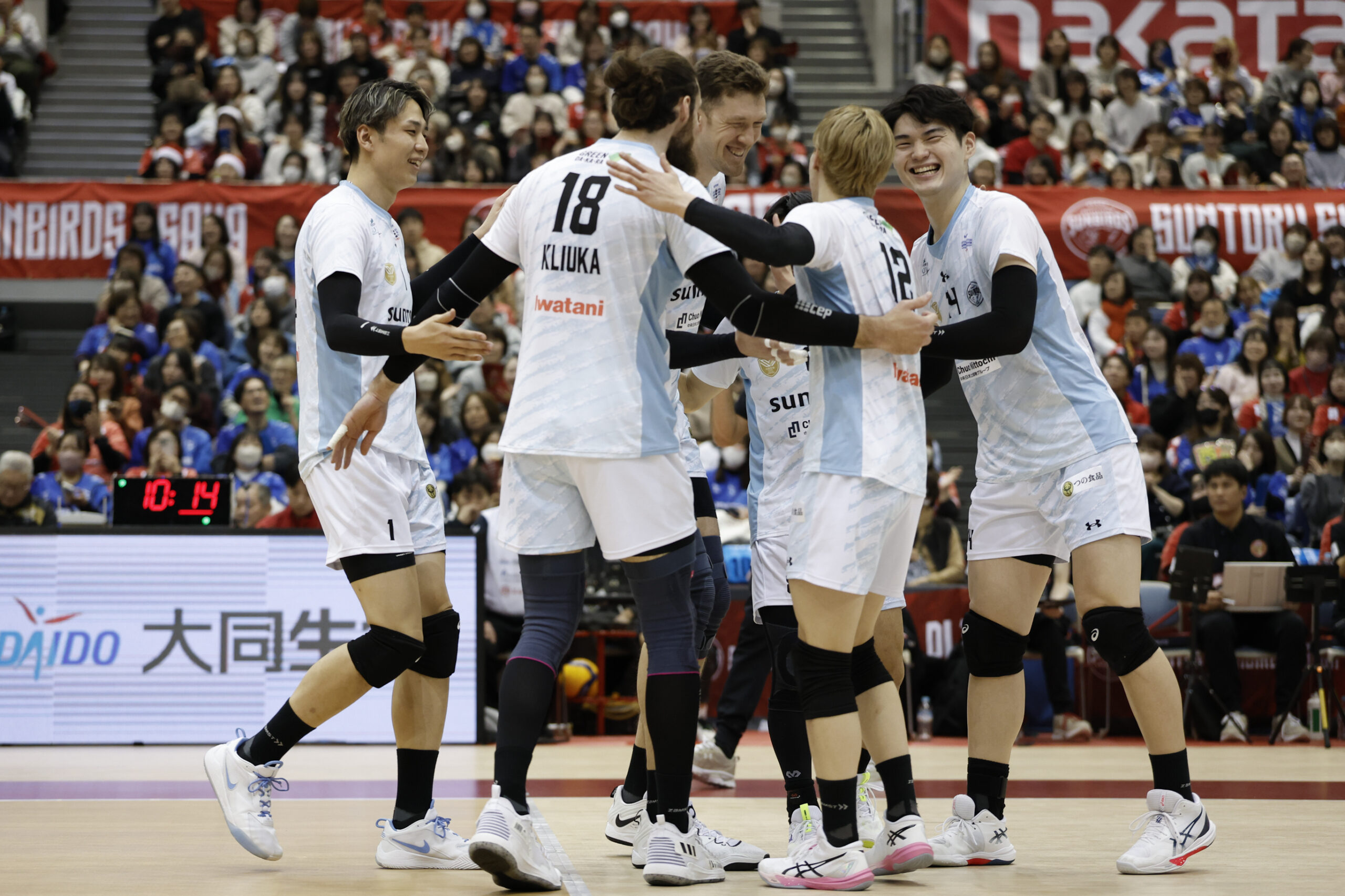 เริ่มเกมในเซตที่ 1 ทีมส่ง Dmitriy Muserskiy ในตำแหน่ง Opposite, Masahiro Sekita เป็น Setter, Ran Takahashi และ Egor Kliuka เป็น Outside Hitter, Taishi Onodera กับ Ren Oniki เป็น Middle Blocker และ Tomohiro Ogawa เป็น Libero ในช่วงต้นเกมทีมถูกคู่แข่งทำแต้มนำไปก่อน 2-5 แต่หลังจากนั้นการบล็อกของ Dmitriy Muserskiy และ Taishi Onodera ช่วยให้แต้มไล่มาเป็น 6-8 ก่อนที่ลูกเสิร์ฟของ Dmitriy Muserskiy จะช่วยให้เสมอเป็น 9-9 ในช่วงกลางเซตคู่แข่งเริ่มเล่นผิดพลาดทำให้ทีมพลิกกลับมานำ 12-10 จน OSAKA BLUTEON ต้องขอเวลานอกครั้งแรก แม้จะถูกตีเสมออีกครั้งที่ 15-15 แต่ลูกตบที่หนักหน่วงของ Ran Takahashi และ Dmitriy Muserskiy ก็ช่วยให้ทีมทำแต้มรวดหนีไปเป็น 19-16 จนคู่แข่งต้องขอเวลานอกครั้งที่สอง หลังจากนั้นลูกตบและลูกเสิร์ฟที่ทรงพลังของ Dmitriy Muserskiy ทำให้แต้มห่างเป็น 23-18 และปิดเซตแรกไปได้ที่ 25-19